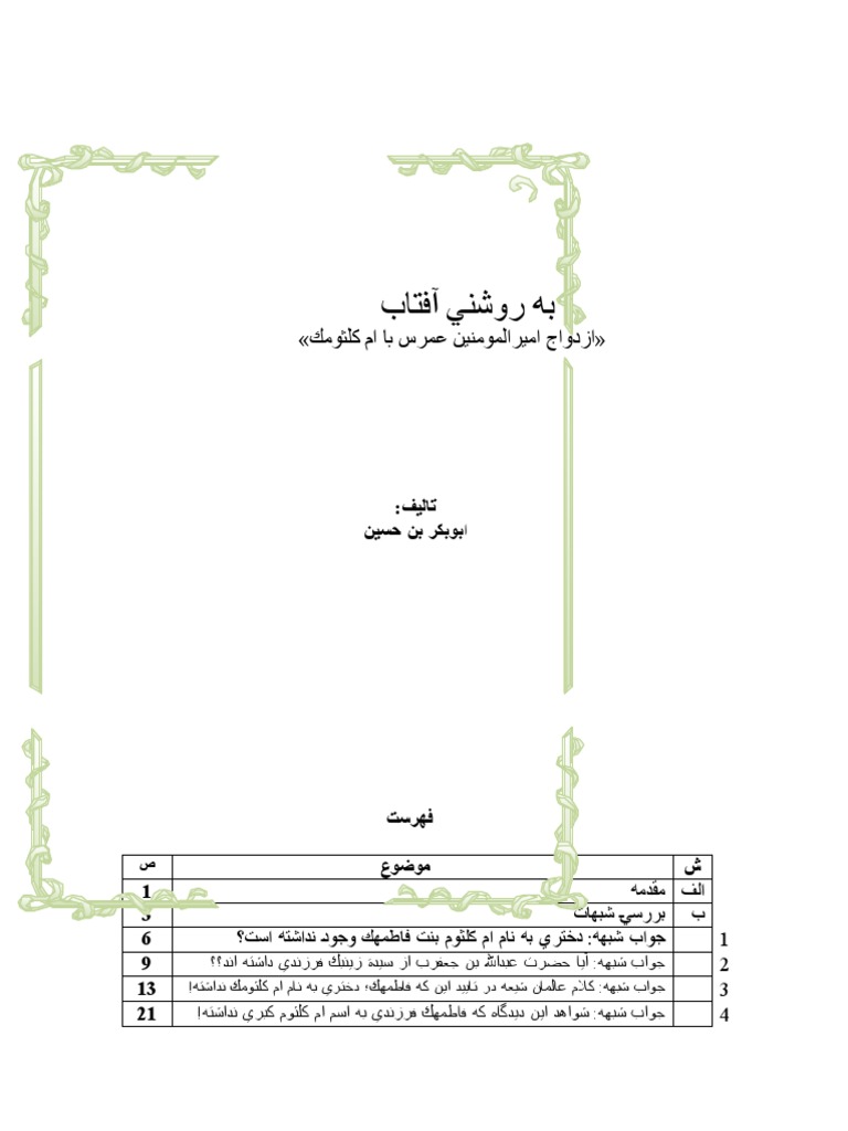به روشنی آفتاب ازدواج امیرالمومنین عمر با ام کلثوم رضی الله عنهما